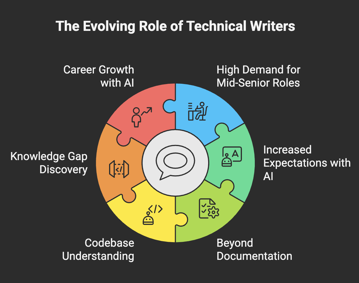 In the scenarios needing technical writers, they must use AI efficiently and focus on context and use-case scenarios.
